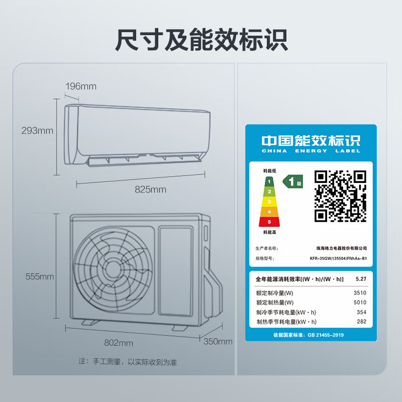 格力(GREE)1.5匹天仪 新1级能效变频 壁挂式卧室省电空调挂机KFR-35GW/(35504)FNhAa-B1 家电国家补贴