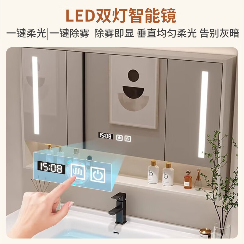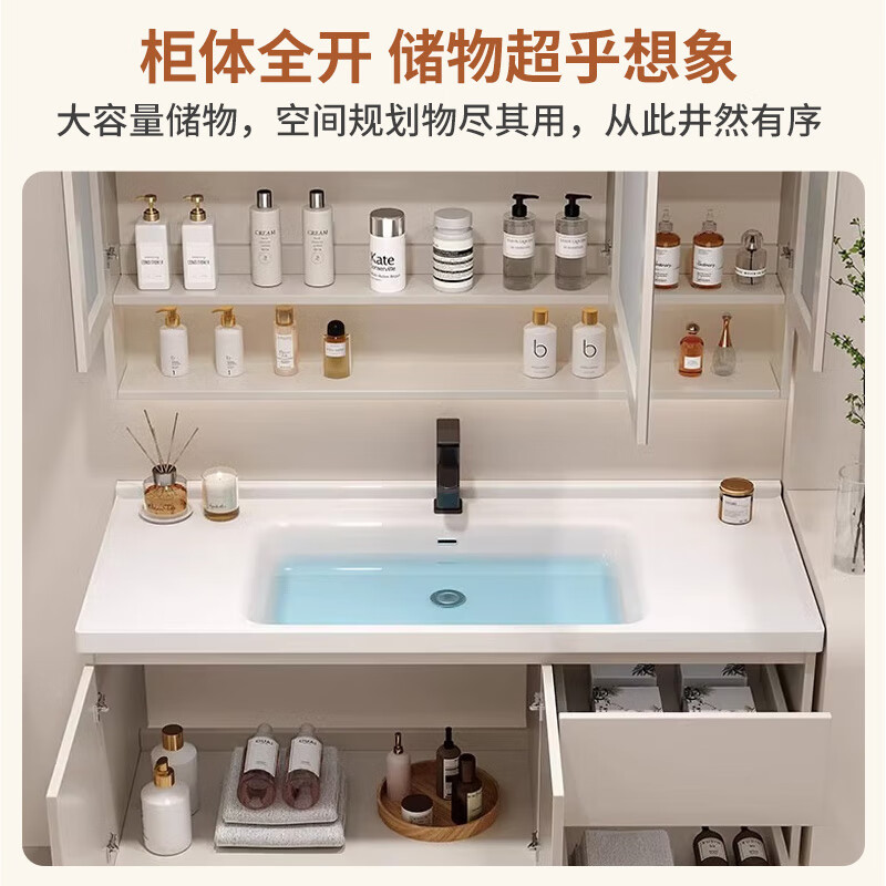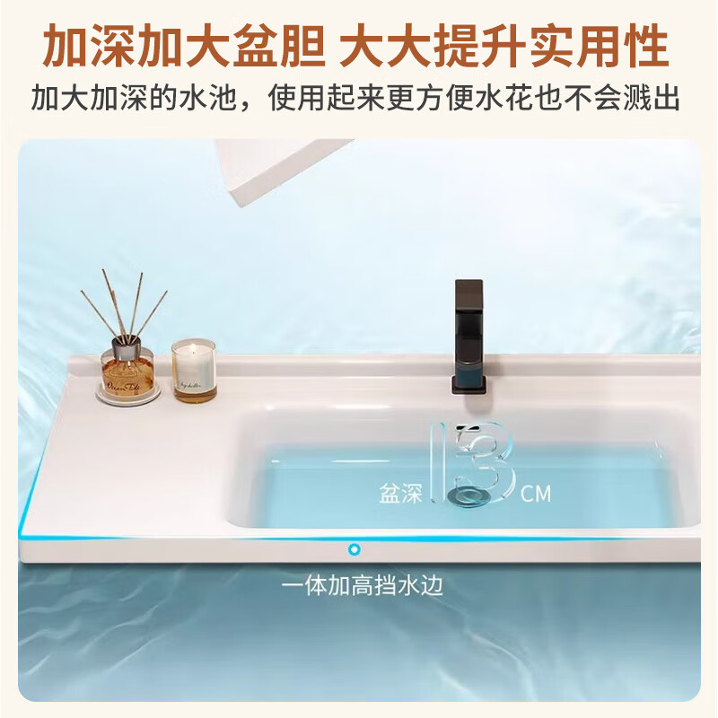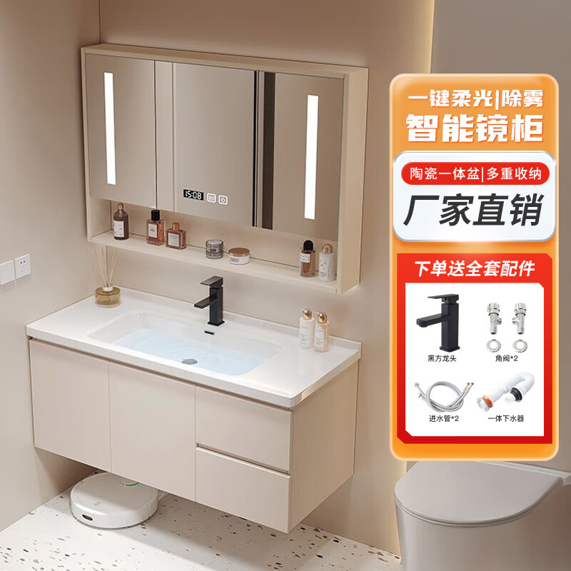 佩氏浴室柜组合智能洗手盆陶瓷一体盆小户型洗脸池洗漱台 轻奢灰60cm吊柜+镜柜