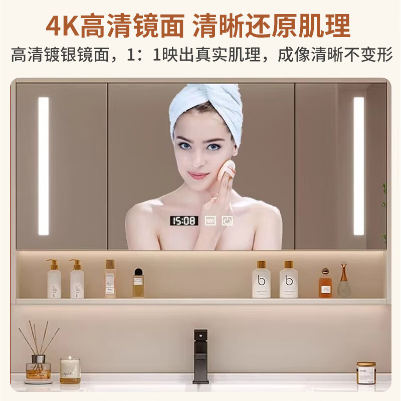 恋派浴室柜 陶瓷一体盆卫生间洗脸盆柜组合悬挂式洗漱台智能洗手盆柜 智能镜柜】珠光灰【促销中】80cm
