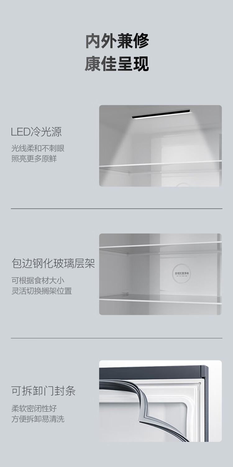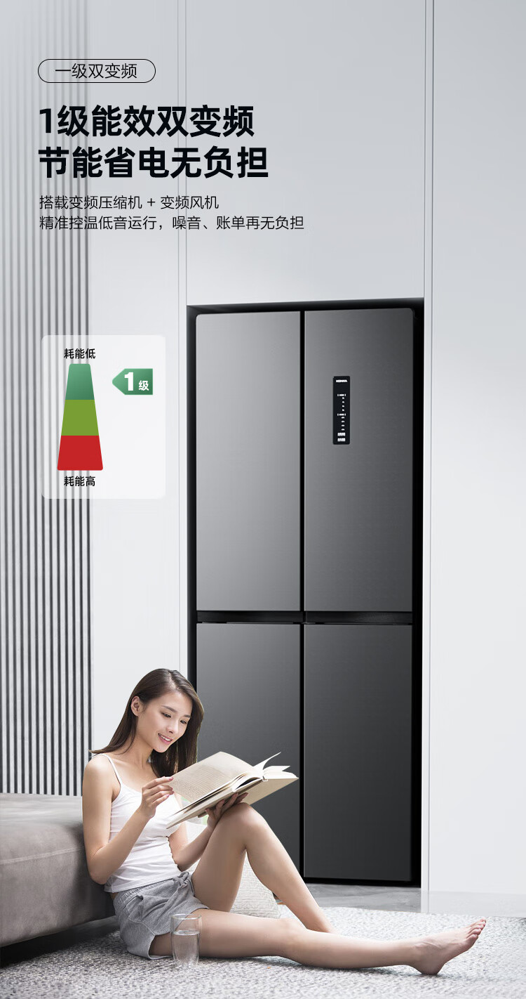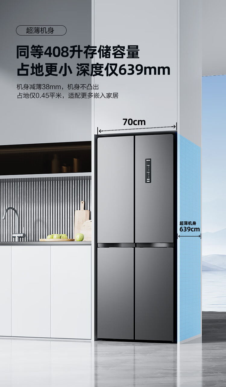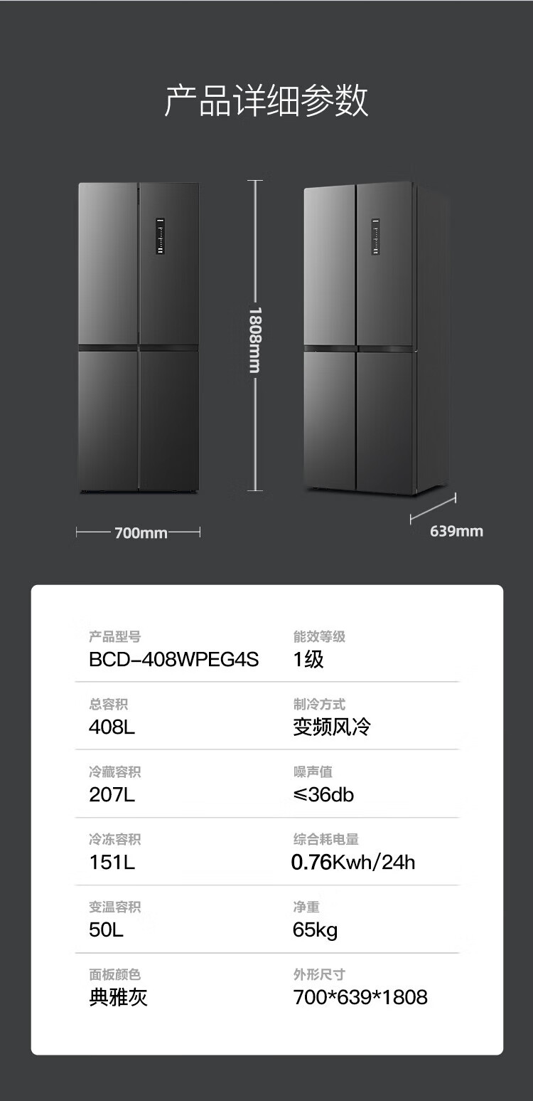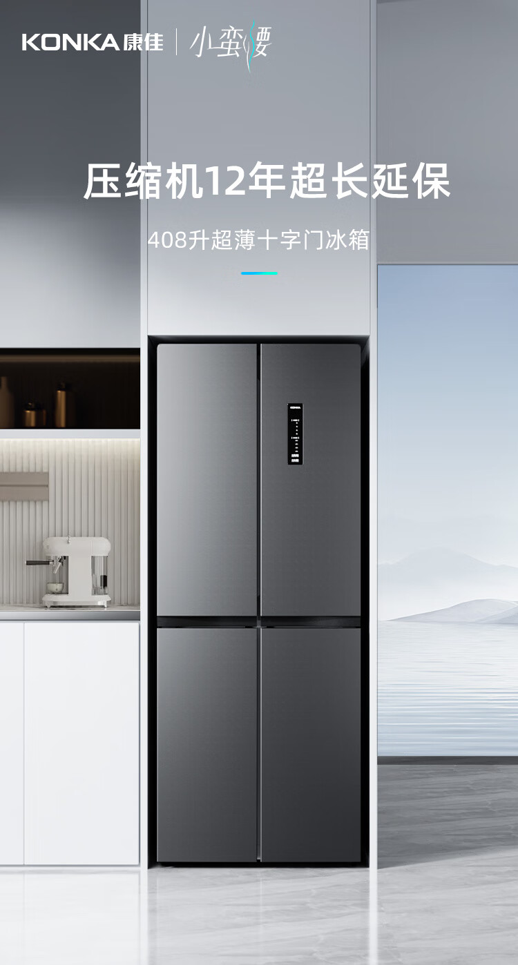 康佳408升智能变频超薄十字对开双开四开一级能效风冷无霜大容量家用电冰箱家电国家补贴BCD-408WPEG4S