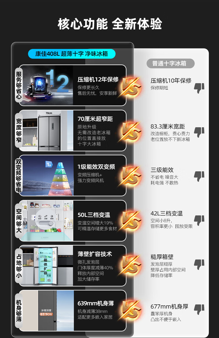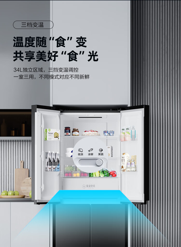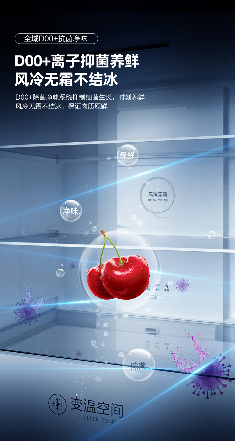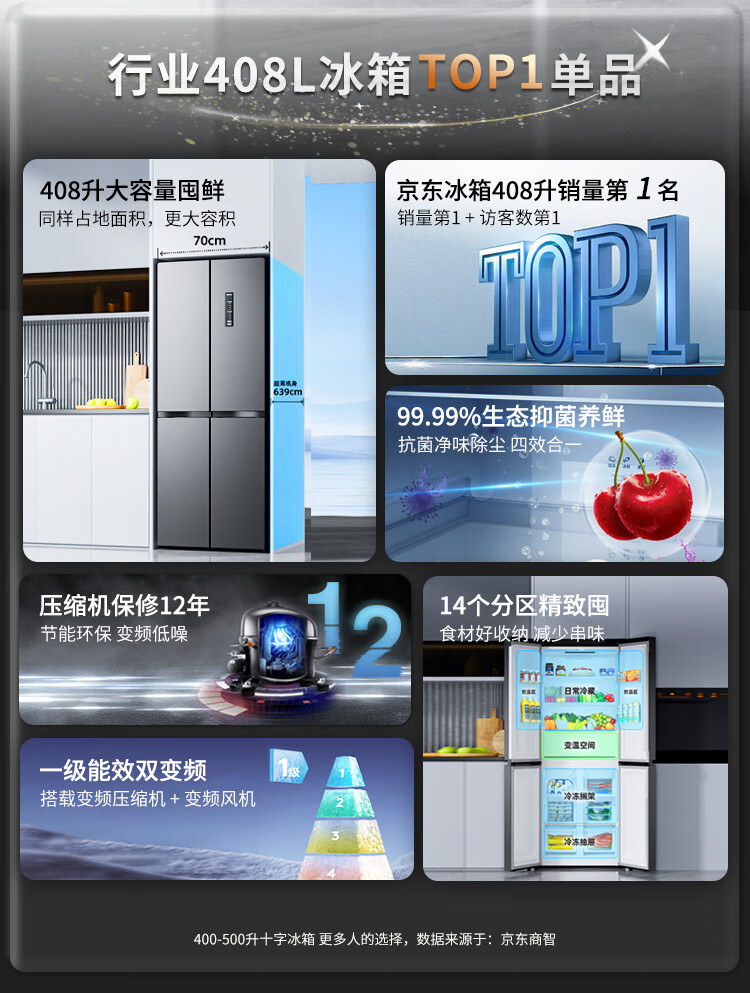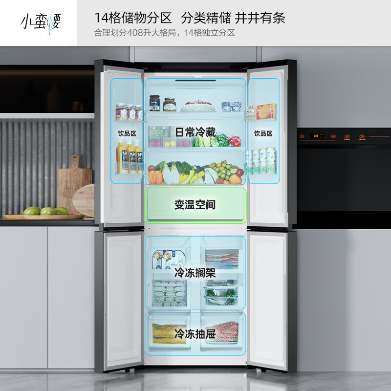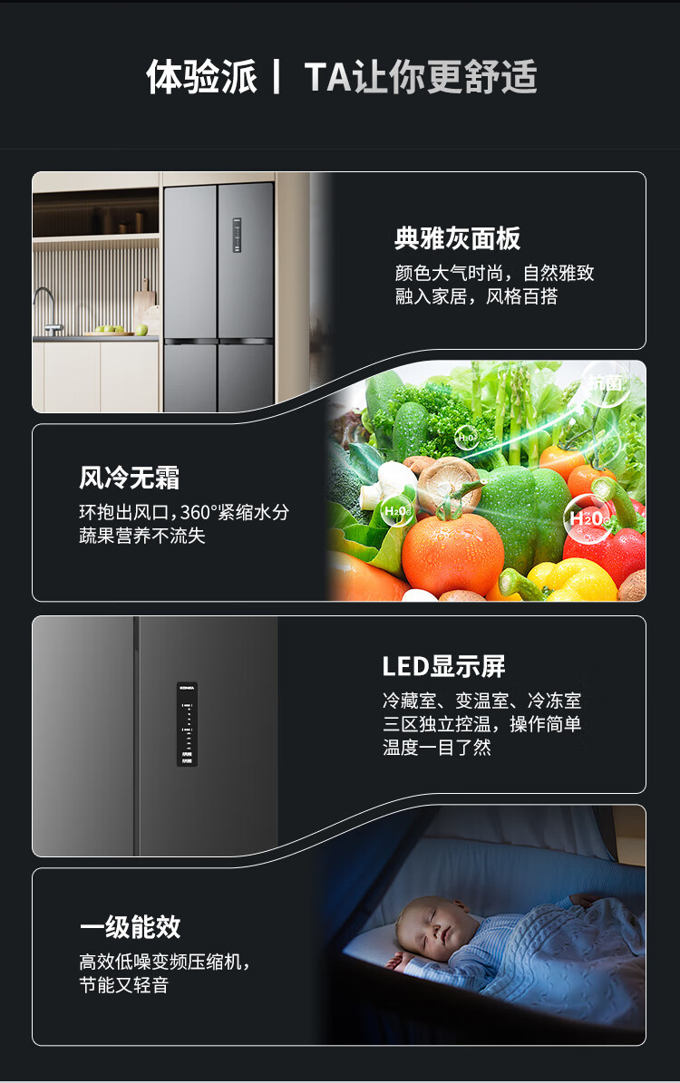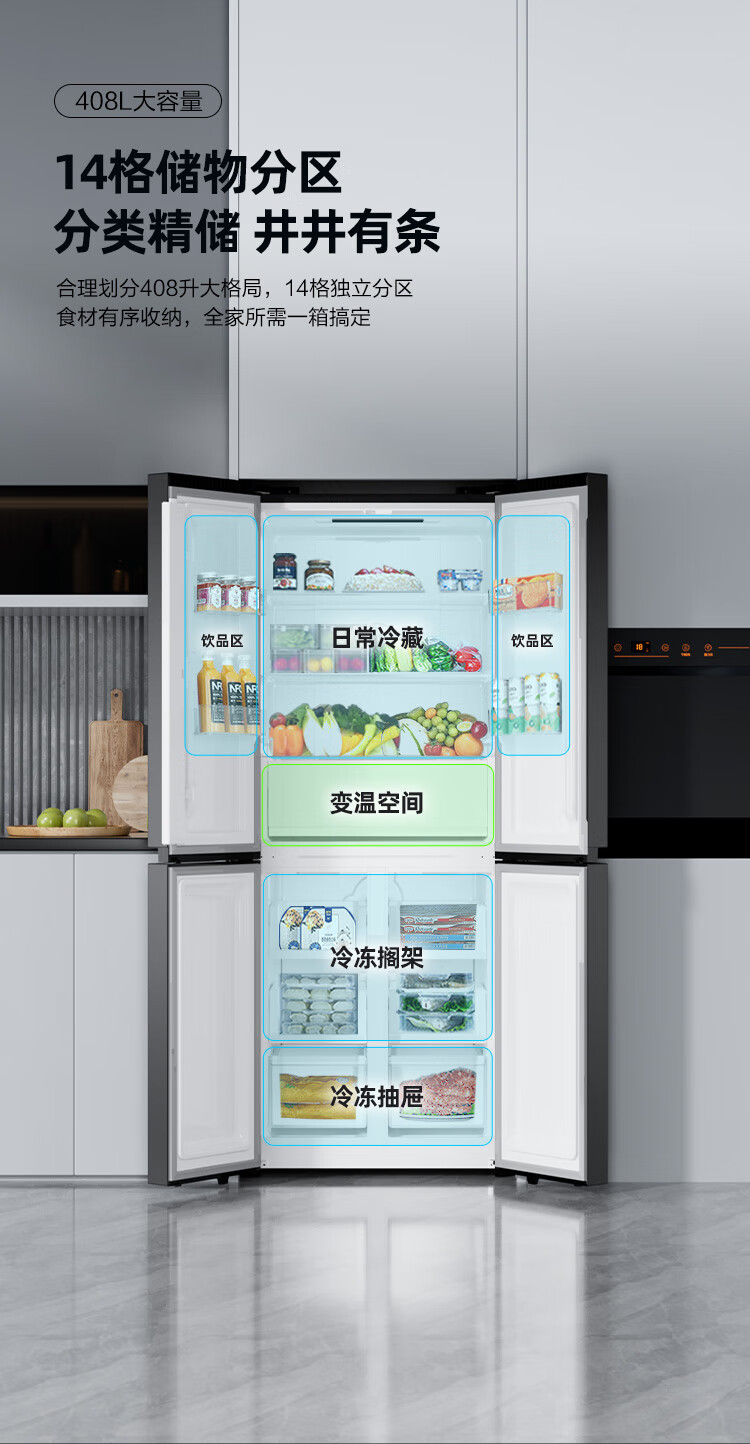 康佳408升智能变频超薄十字对开双开四开一级能效风冷无霜大容量家用电冰箱家电国家补贴BCD-408WPEG4S