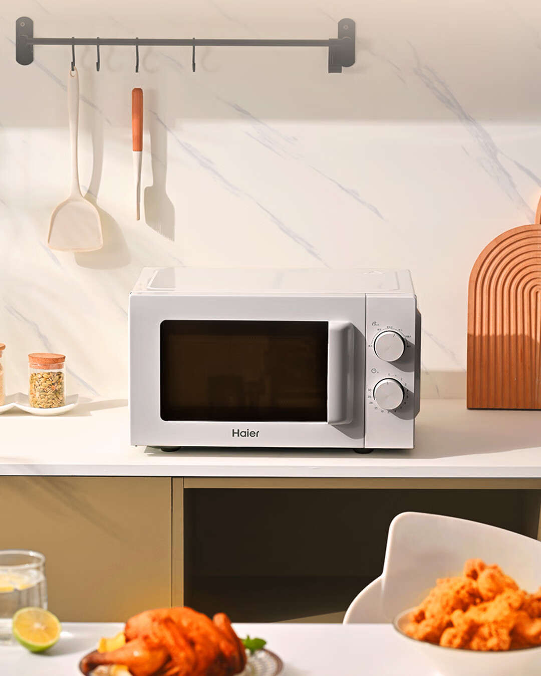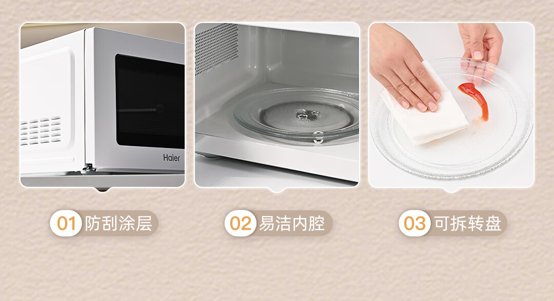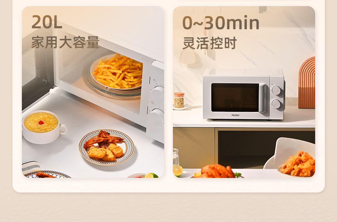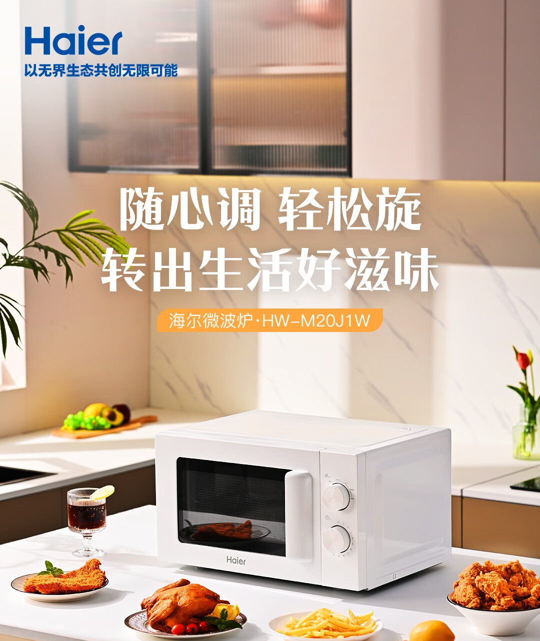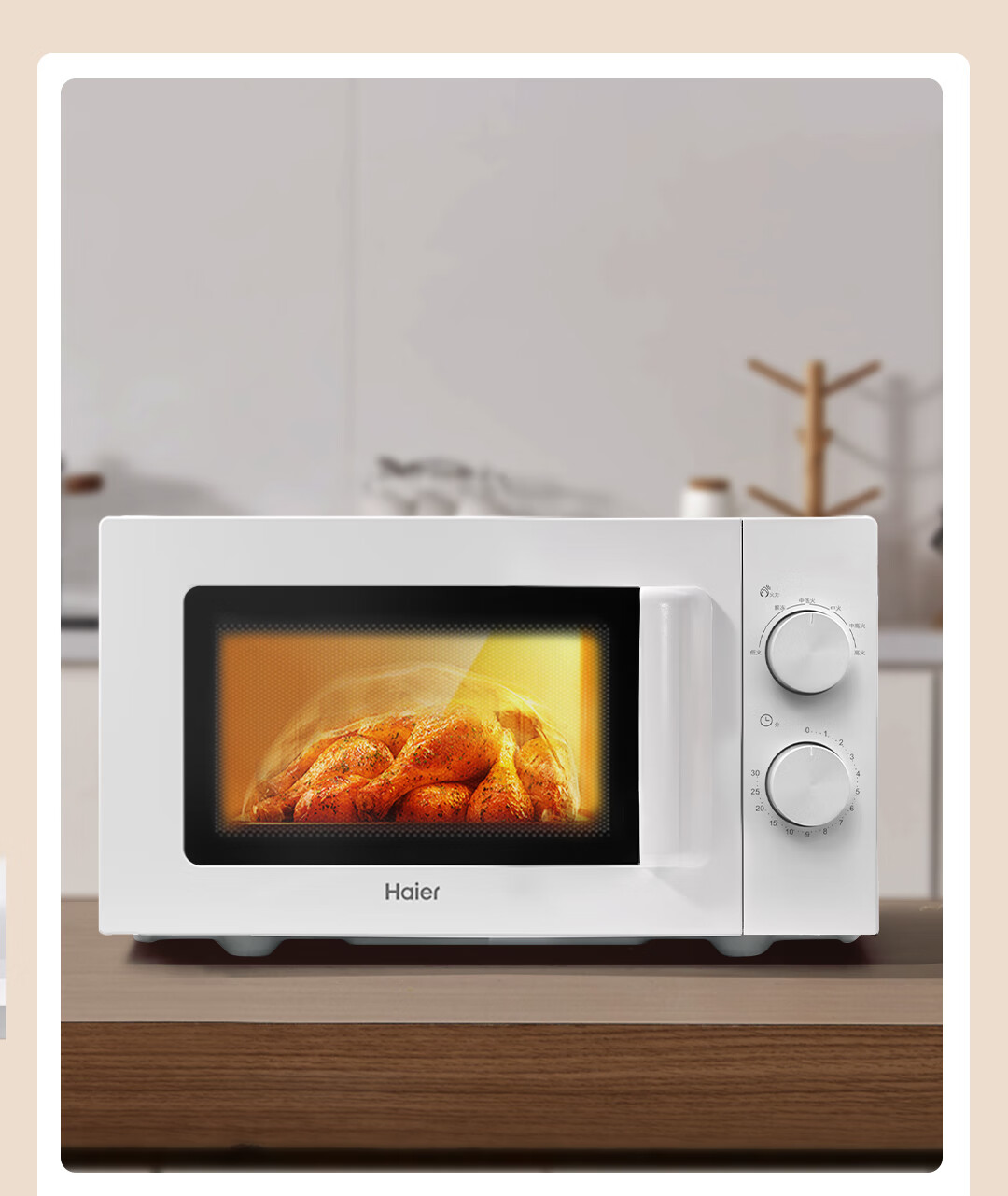海尔(Haier)快捷微波炉 家用小型 360°转盘加热 旋钮操控 易洁内胆 白色HW-M20J1W