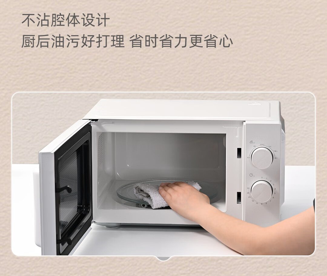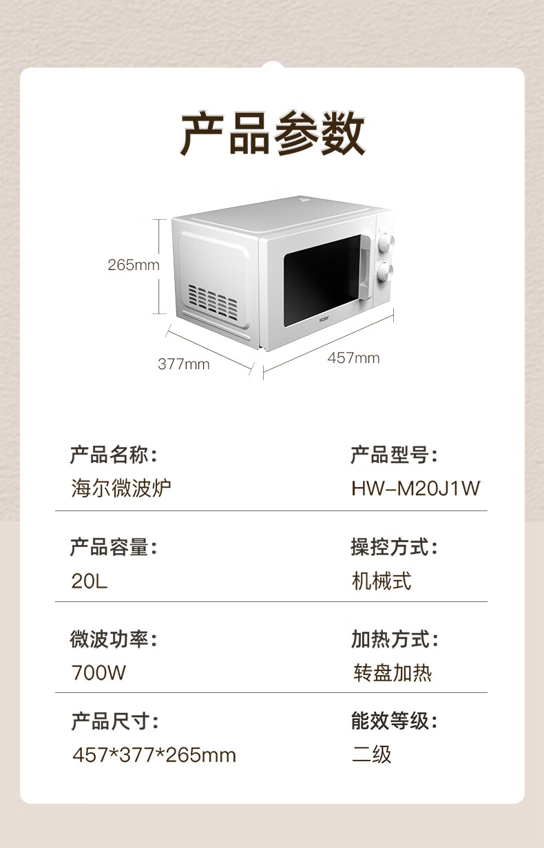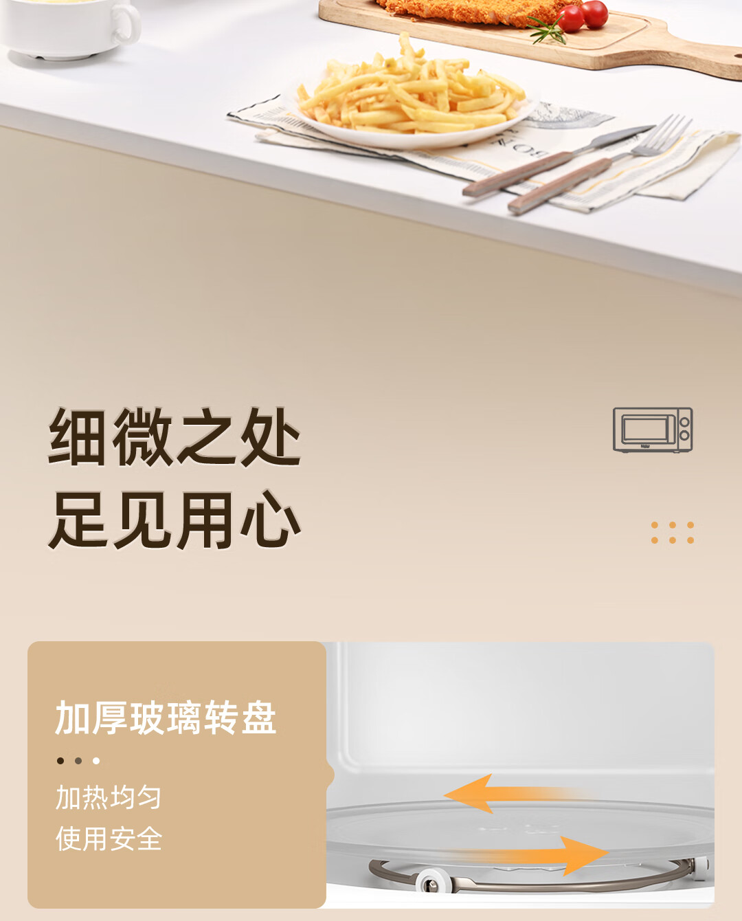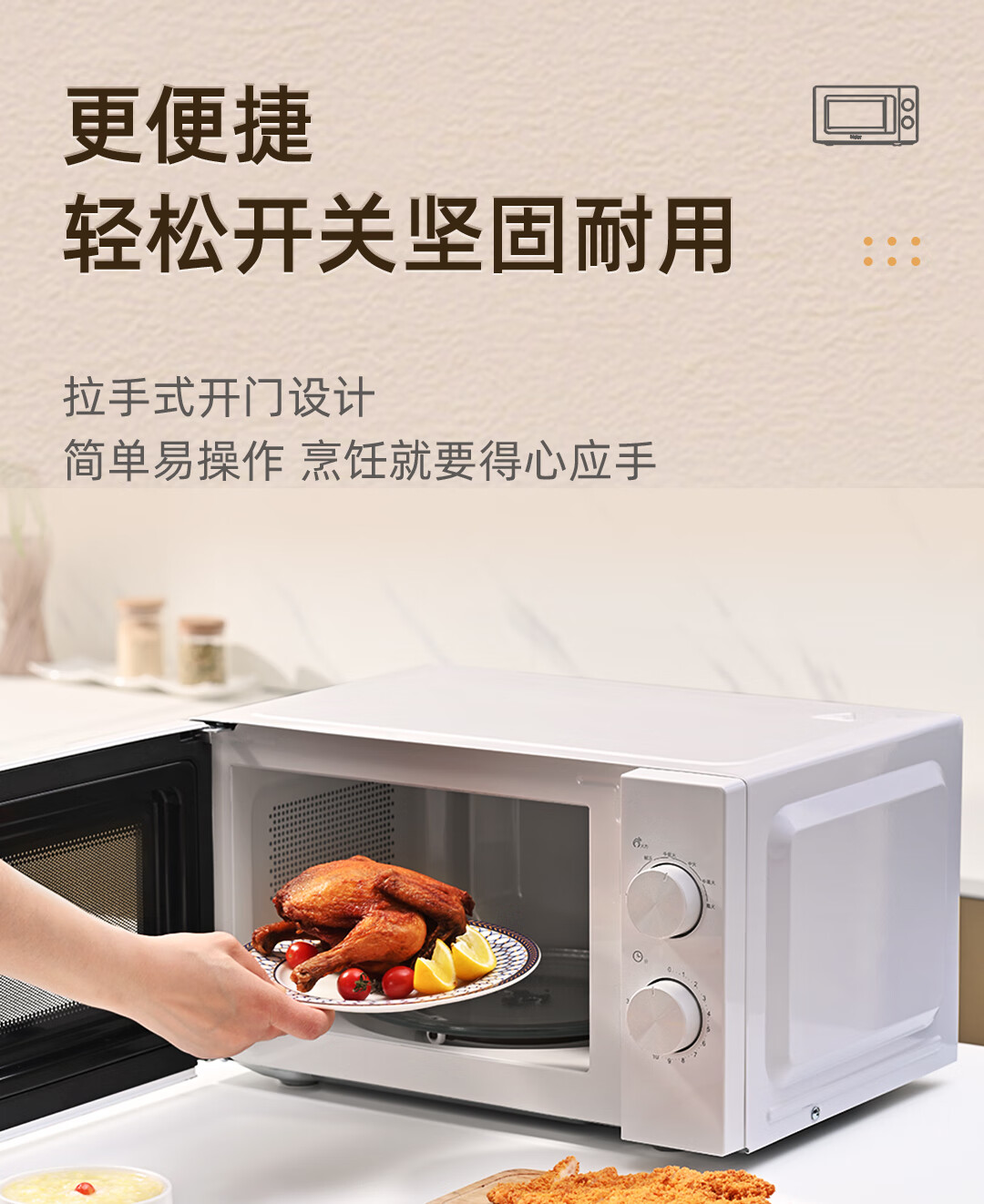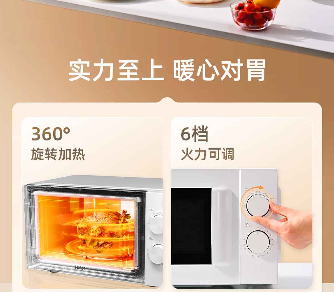 海尔(Haier)快捷微波炉 家用小型 360°转盘加热 旋钮操控 易洁内胆 白色HW-M20J1W