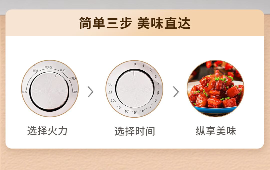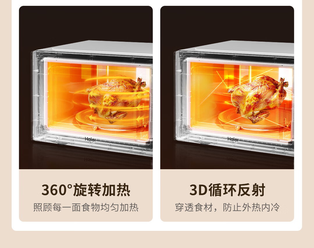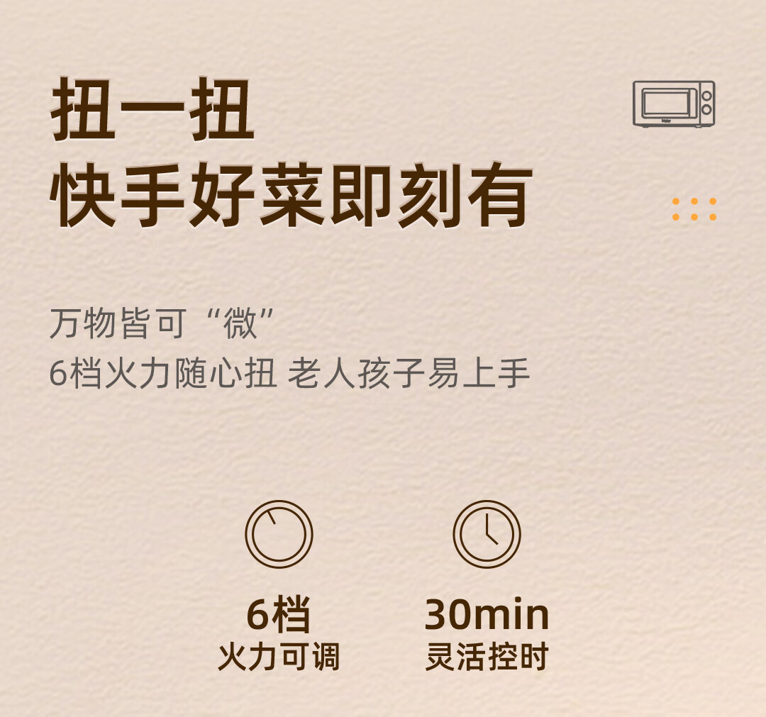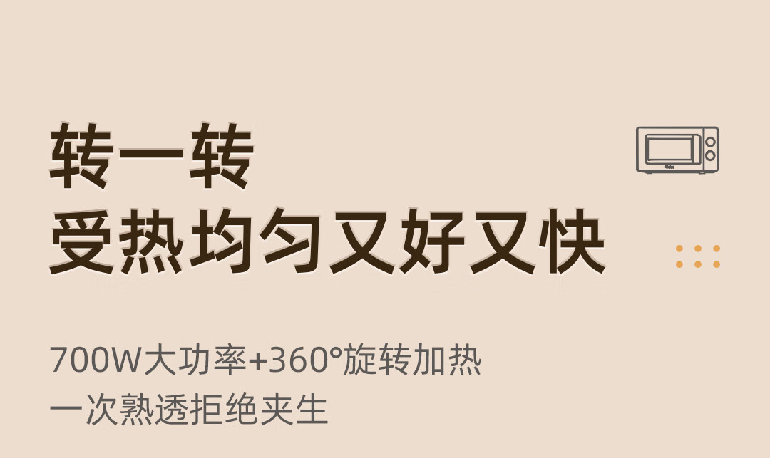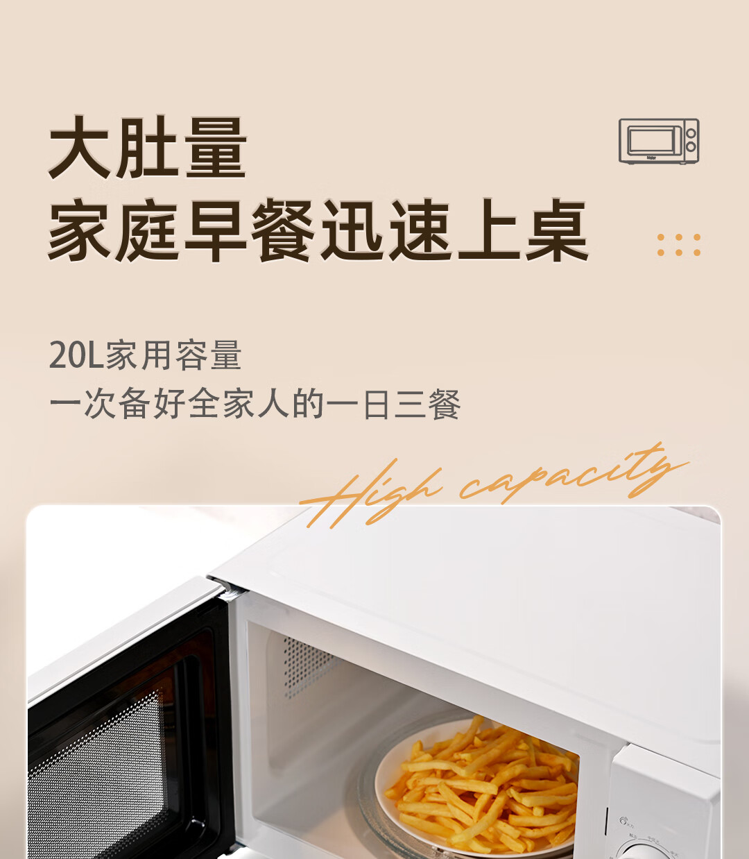 海尔(Haier)快捷微波炉 家用小型 360°转盘加热 旋钮操控 易洁内胆 白色HW-M20J1W