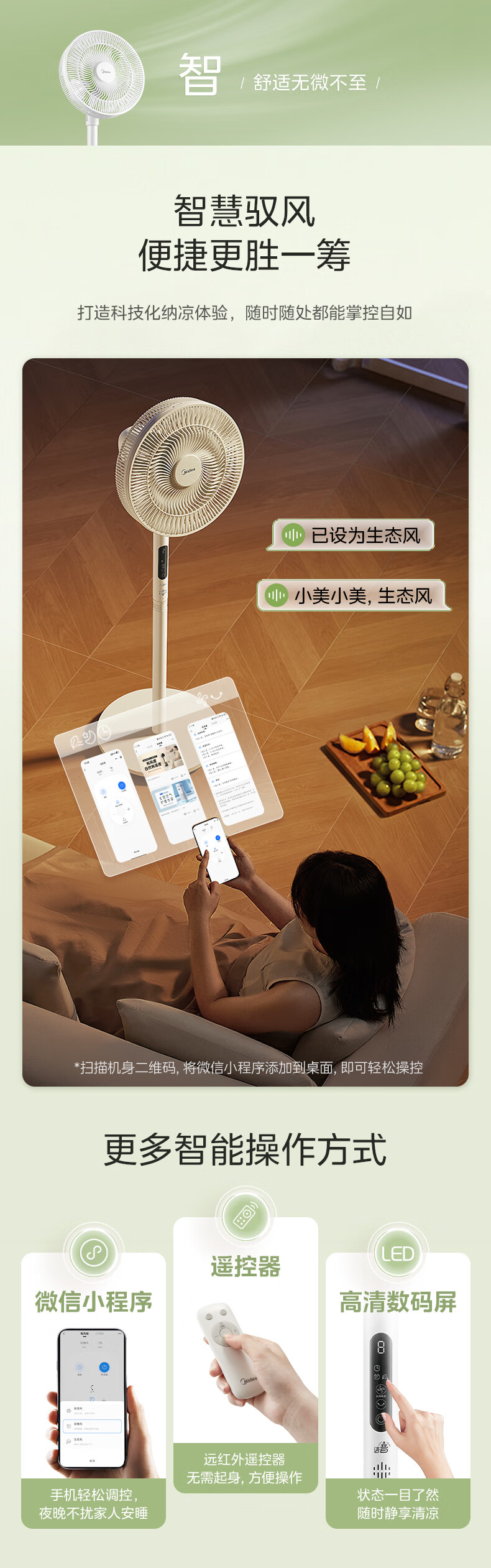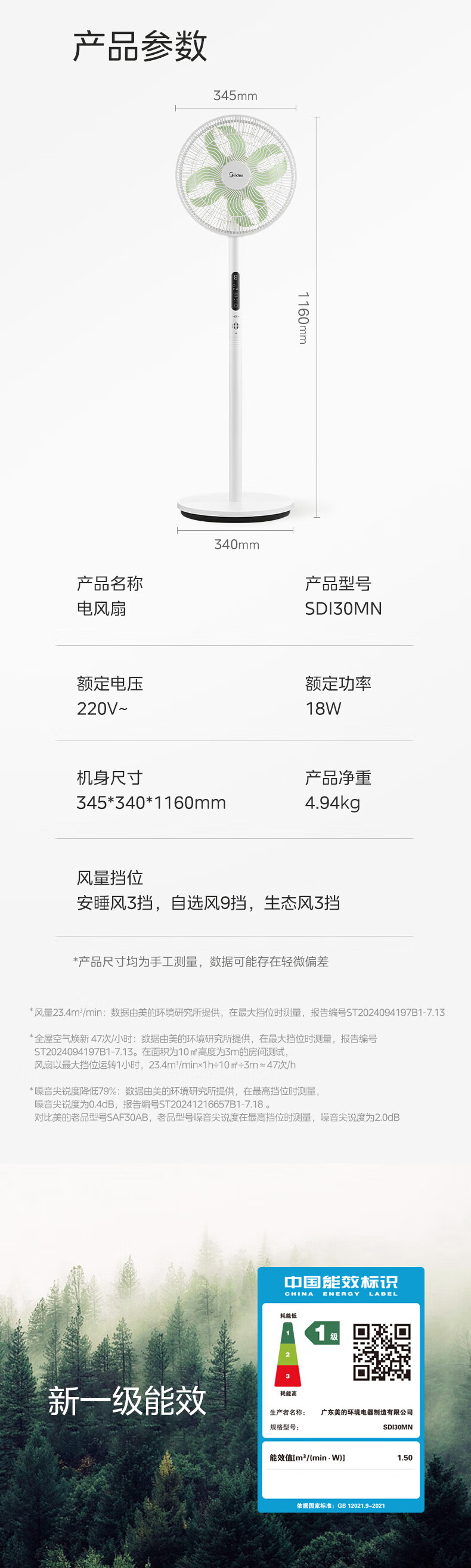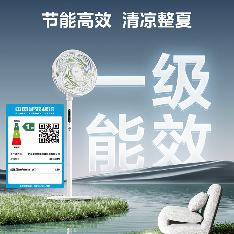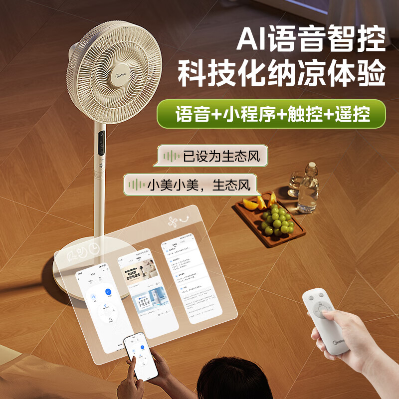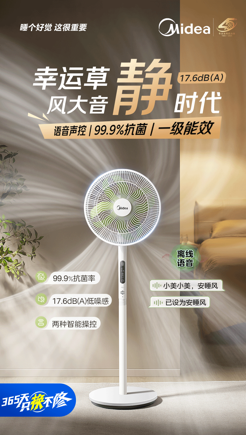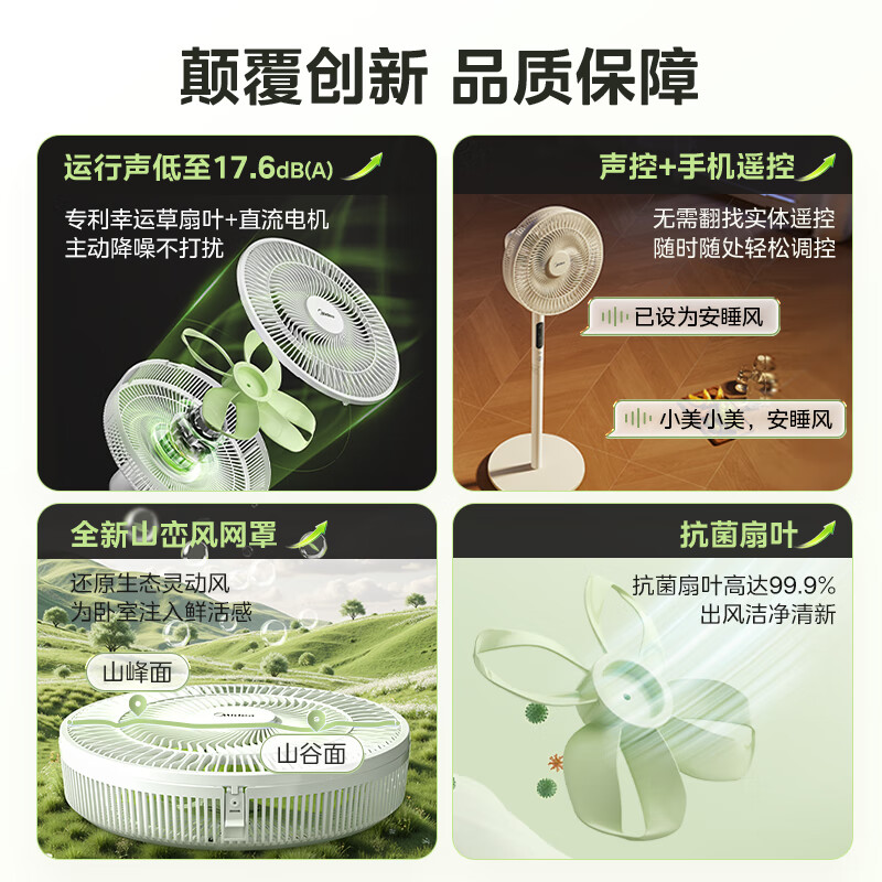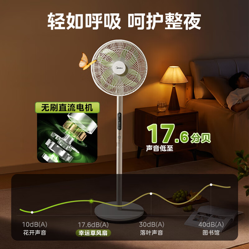 美的(Midea)【幸运草安睡1S】一级能效直流变频声控电风扇家用遥控卧室静音落地扇台式桌面抗菌大风力转页扇