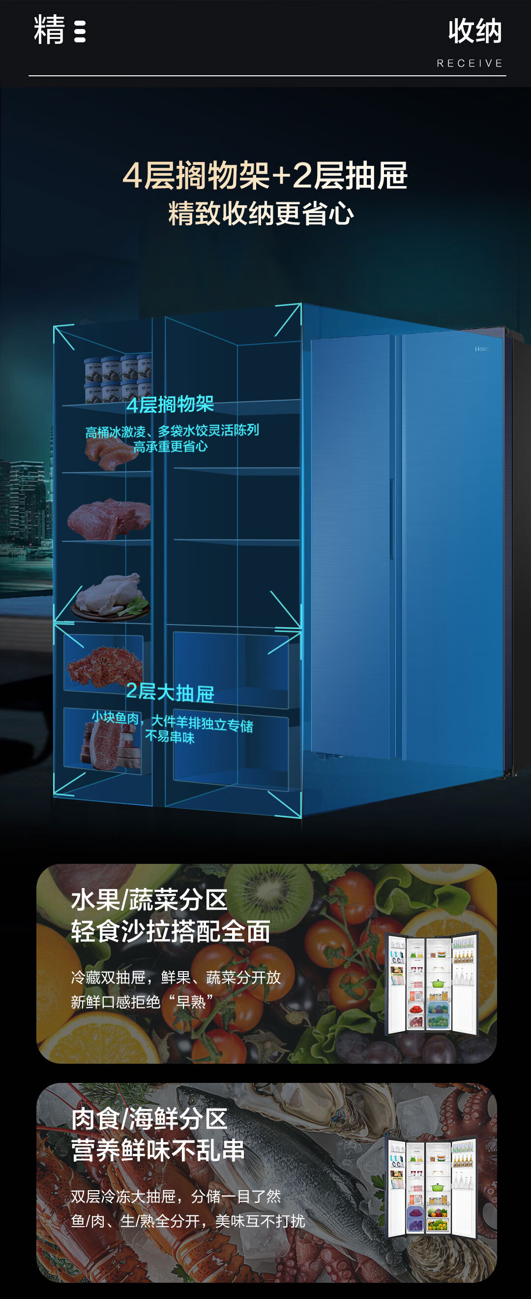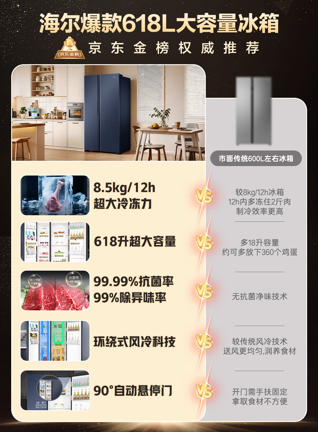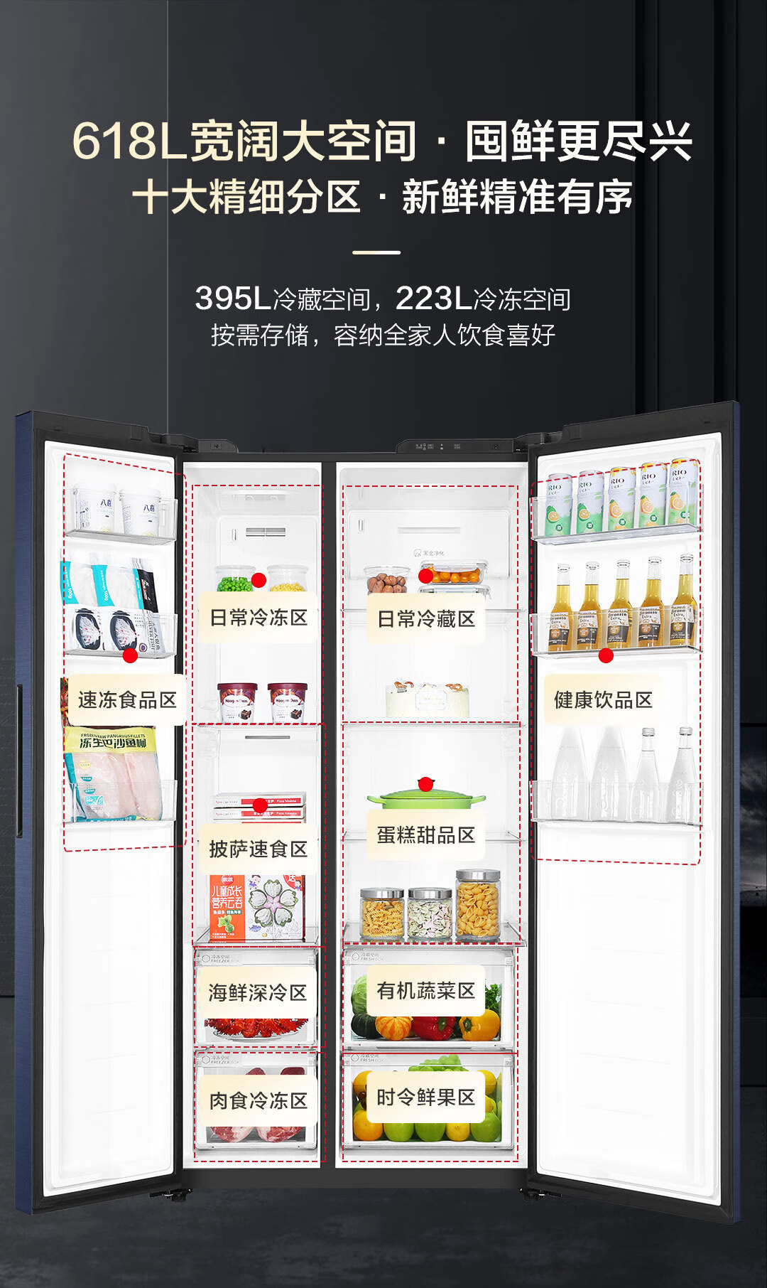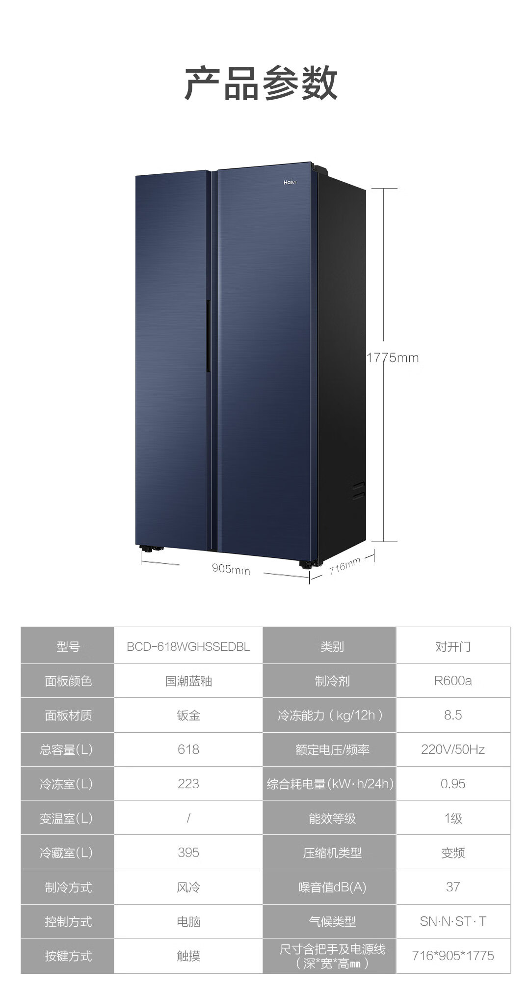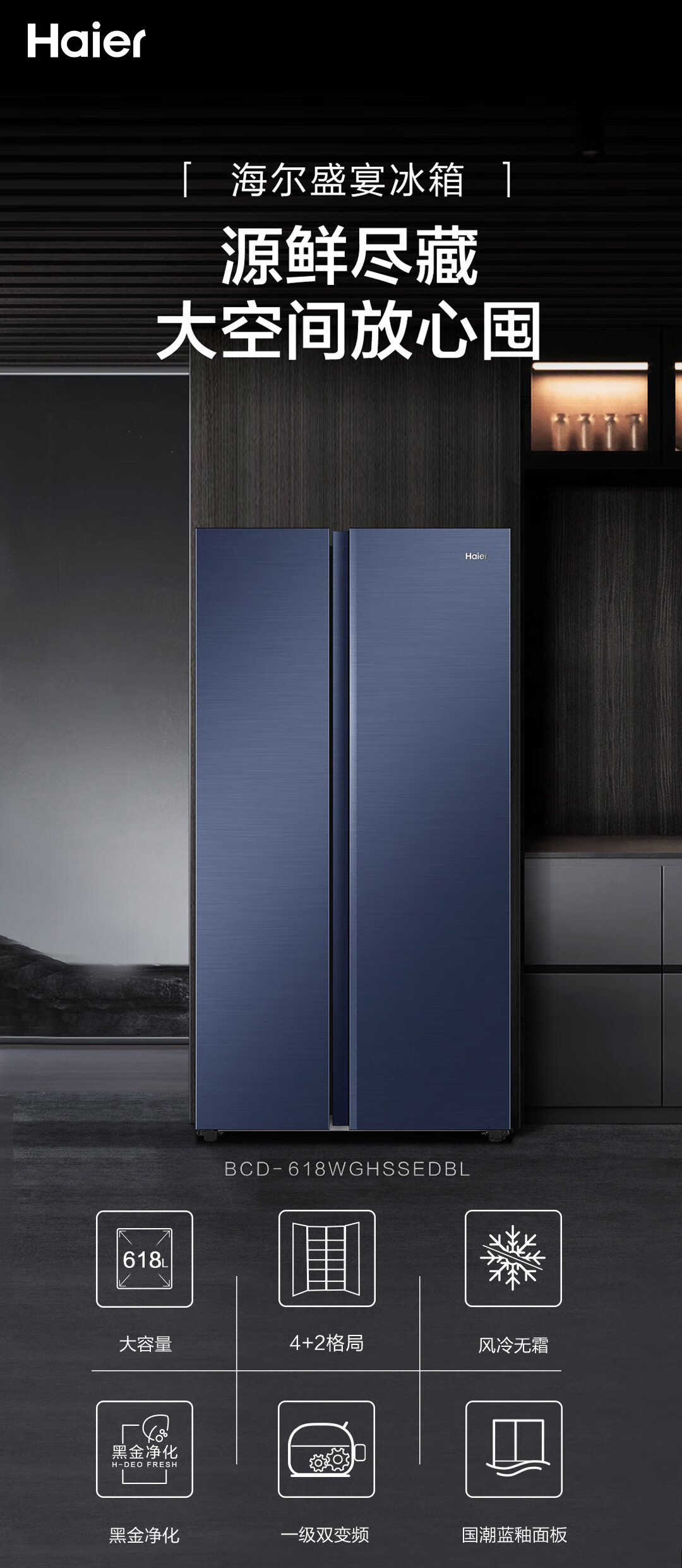 海尔(Haier)618升双开门对开门冰箱电冰箱家用一级能效风冷无霜大容量节能变频BCD-618WGHSSEDBL国家补贴20%